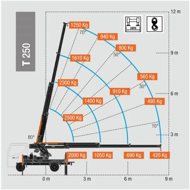 La BG-T250, è dotata di un sistema di controllo integrato, che consente alla gru di adeguare automaticamente il limitatore di carico, alla situazione determinata dalla posizione di ogni stabilizzatore.