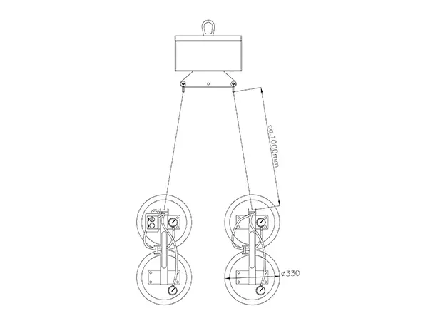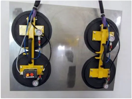 Collegato al gruppo aspirante tramite fasce di sollevamento ad alta portata, vi sono i due gruppi di aspirazione, dotati di piastre aspiranti a doppio labbro, di 330 mm, che permettono al sistema G2/12V di sollevare carichi in piena sicurezza, fino a 300 kg.