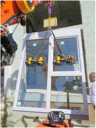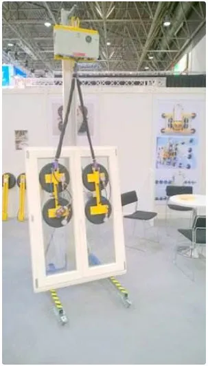Compatto sistema di sollevamento, nato per semplificare la movimentazione di infissi completi di vetro.