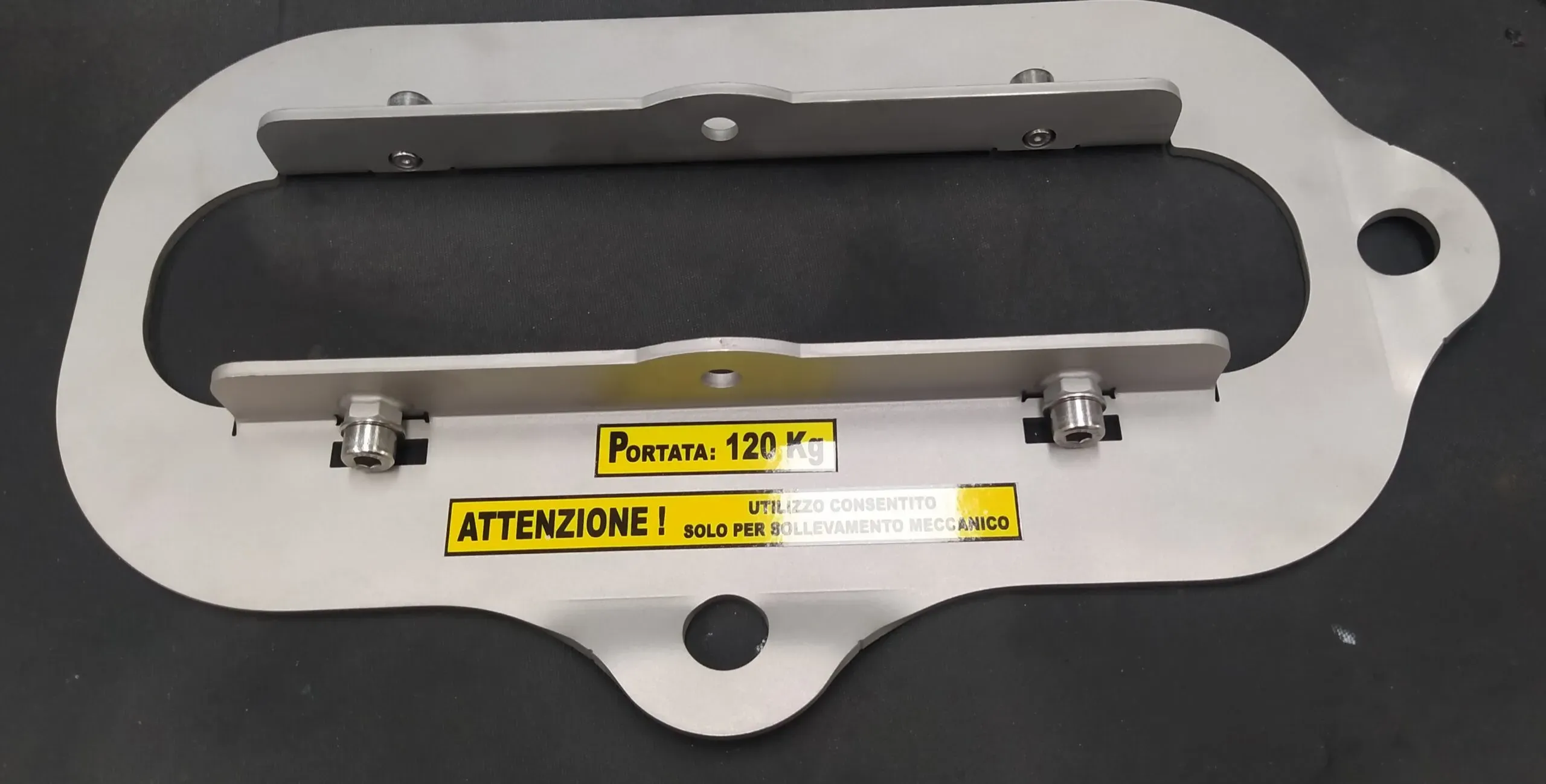 N° 1 Piastra in acciaio con 3 punti di ancoraggio per il sollevamento meccanico, tramite sollevatori dotati di gancio.