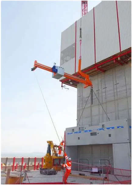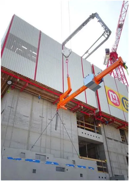Dotato di un gancio all’estremità del braccio di sollevamento, il bilancino contrappesato Libro 2500 può essere utilizzato con un sollevatore a ventose sotto-gancio. Questa trave a sbalzo ad alta capacità, può essere fissata a gru a torre o gru mobili ed è adatta per progetti di installazione in altezza.