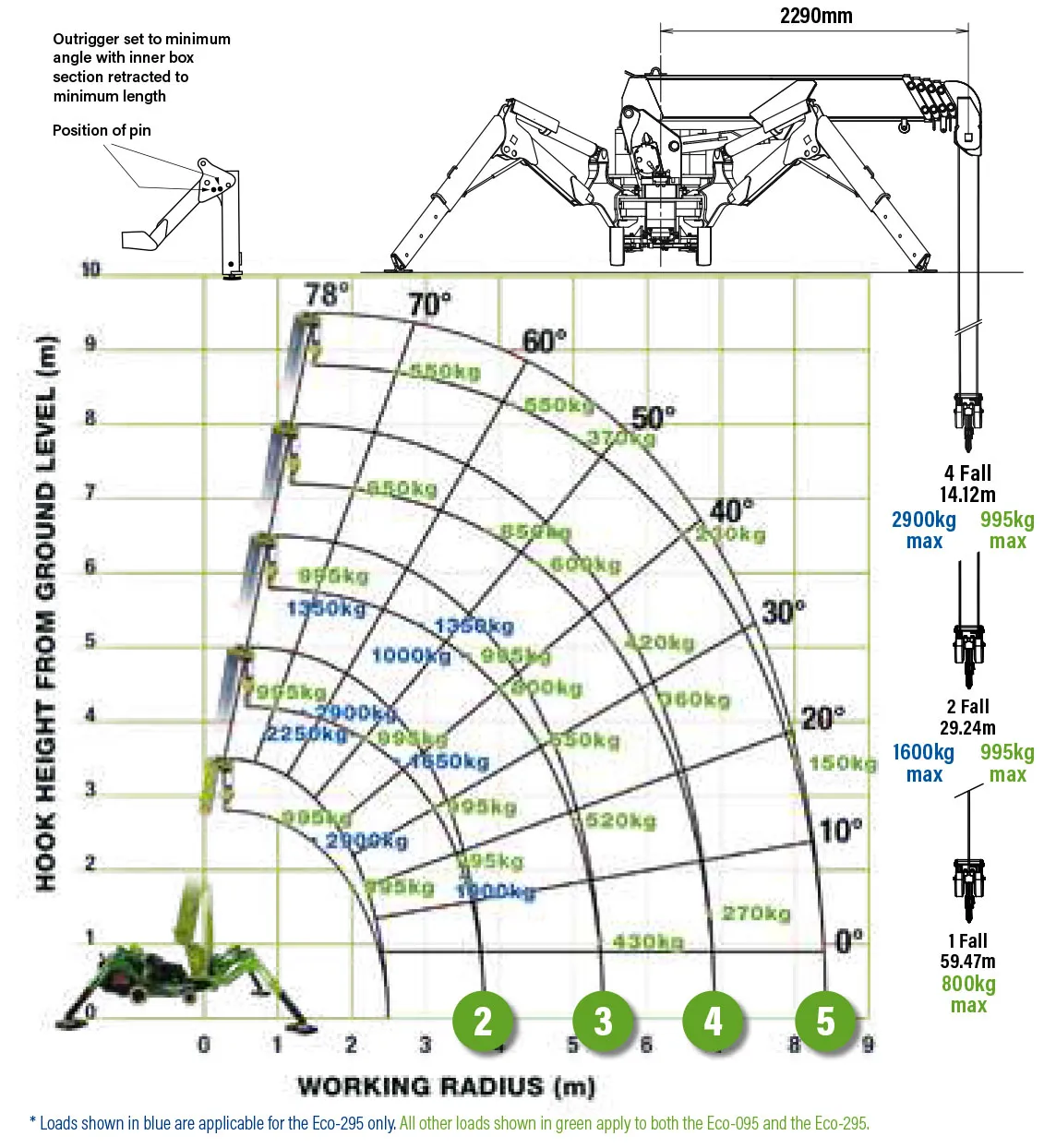 Questa esclusiva gru ragno è alimentata da un complesso di batterie ricaricabili, per un totale di 48 V senza emissioni inquinanti che impattano sull’atmosfera circostante.
