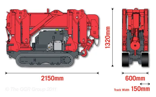 Questa piccola gru ha la capacità di lavorare in aree normalmente inaccessibili alle gru standard, come gli interni e tra i piani, e può passare facilmente attraverso una porta standard o un montacarichi senza necessità di smontaggio.