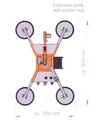 Corpo ventosa e gruppo batterie separati per limitare il peso applicato al braccio.